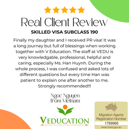 Founded my Ms. Han Huynh - former Brisbane International Student Ambassador, V Education is proudly the first Vietnamese education agency established in Brisbane City since 2015. With our in-house Registered Migration Agents, we can assist you with a range of study and visa services.